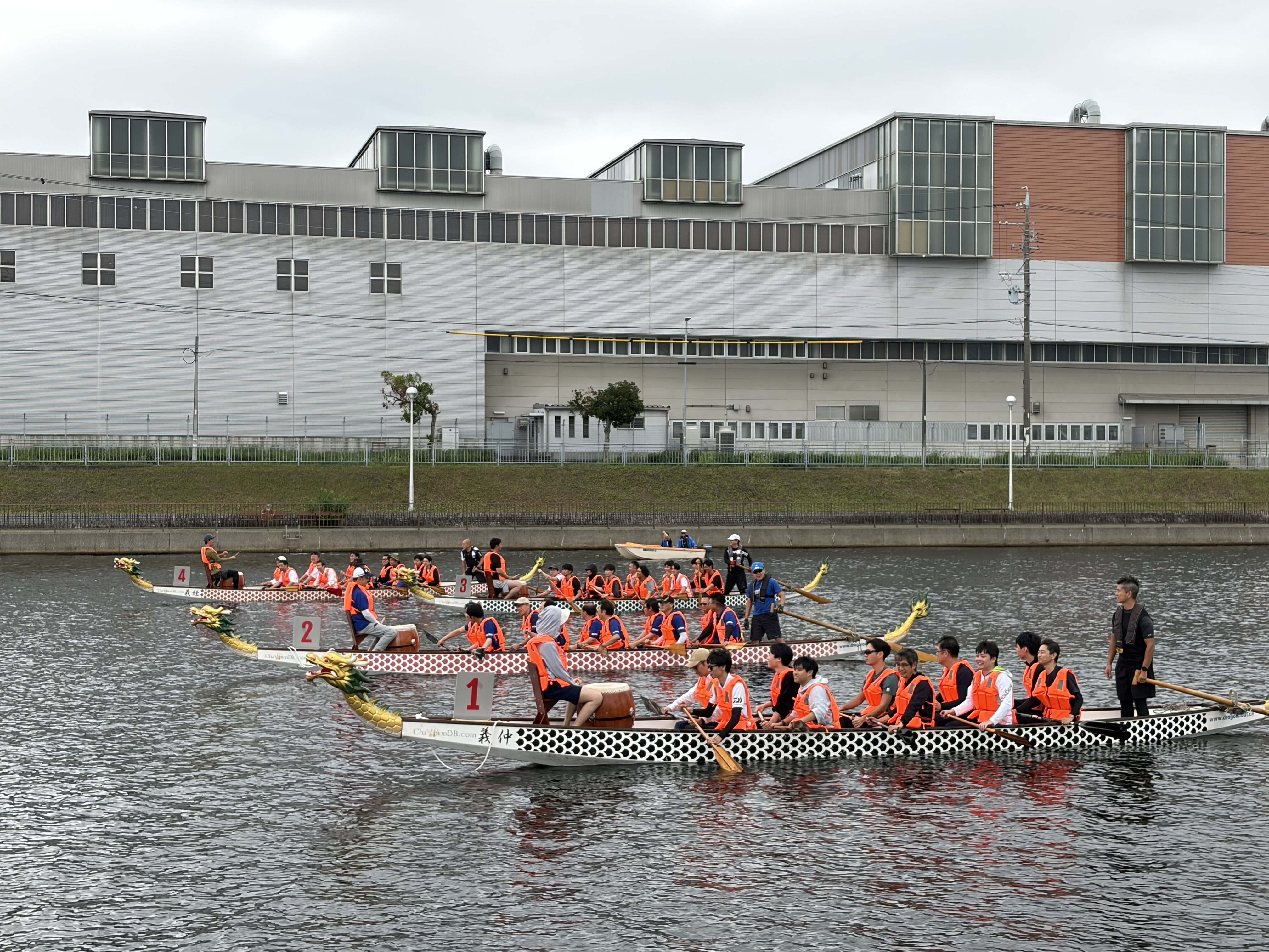 10月19日(日)、みなとアクルス西側を流れる中川運河・名古屋港漕艇センターにて、「中川運河ドラゴンボートレース大会」が開催されました。